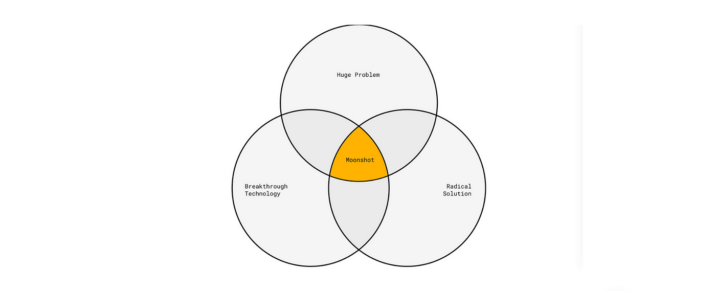 Formerly known as Google X, X is the research and development facility founded by Google in 2010. Often referred to as a “moonshot factory,”😉 X’s mission is to invent and launch “moonshot” technologies that aim to make the world a radically better place. A moonshot, as defined by X, is the intersection of (1) a big problem, (2) a radical solution, and (3) breakthrough technology.
