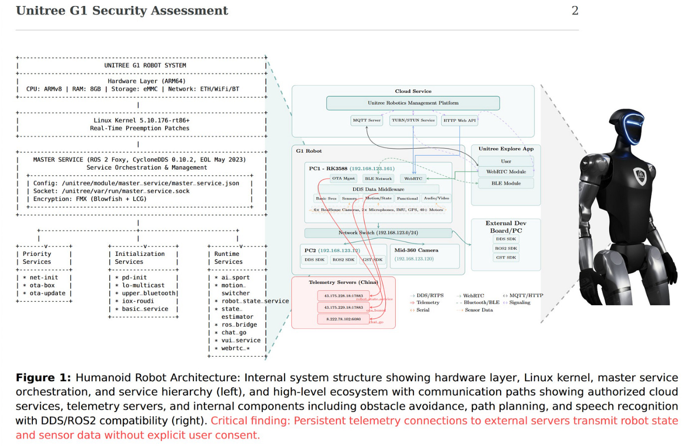 According to this paper, the Unitree G1 humanoid robot secretly and continuously sends sensor and system data to servers in China without the ownerās knowledge or consent. https://arxiv.org/abs/2509.14139